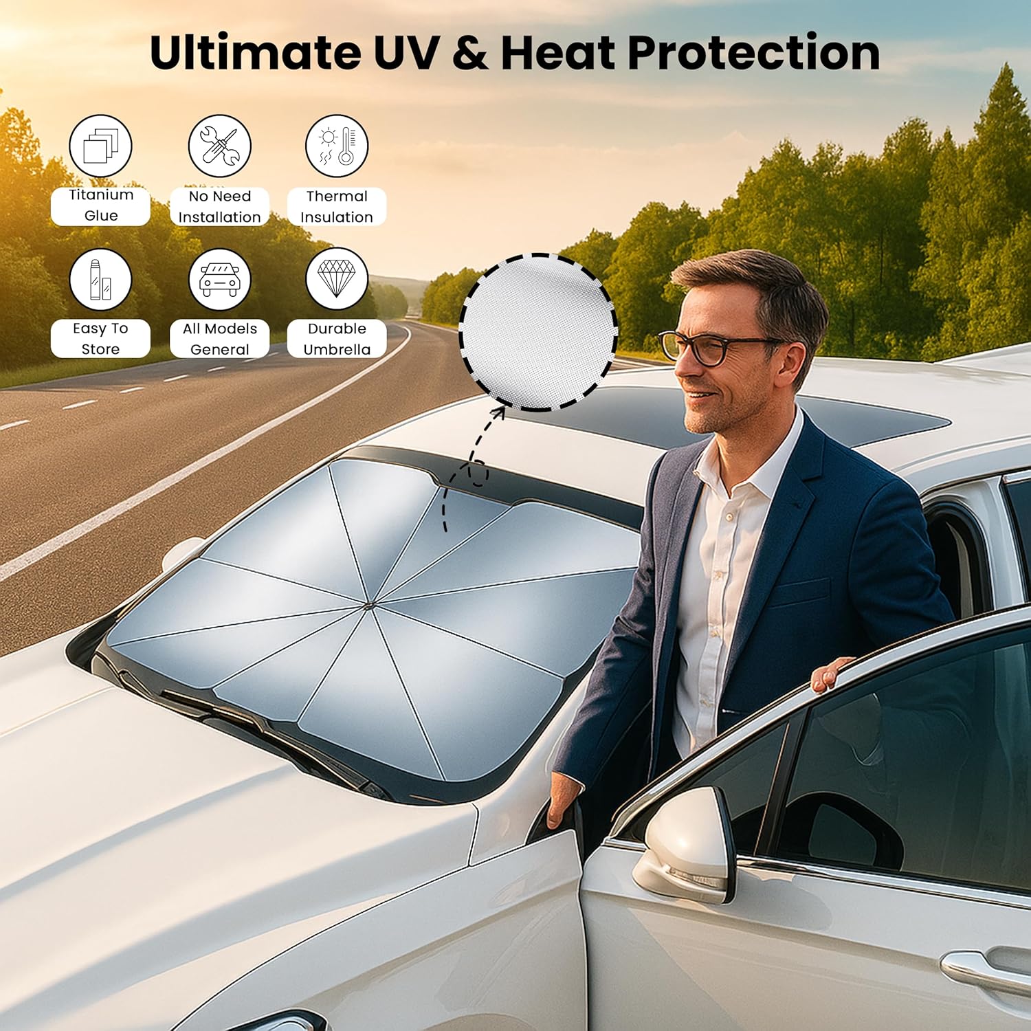 Car Windshield Sun Shade – UV Protection Foldable Reflective Shield for Car Interior | Keeps Your Car Cool in UAE Heat