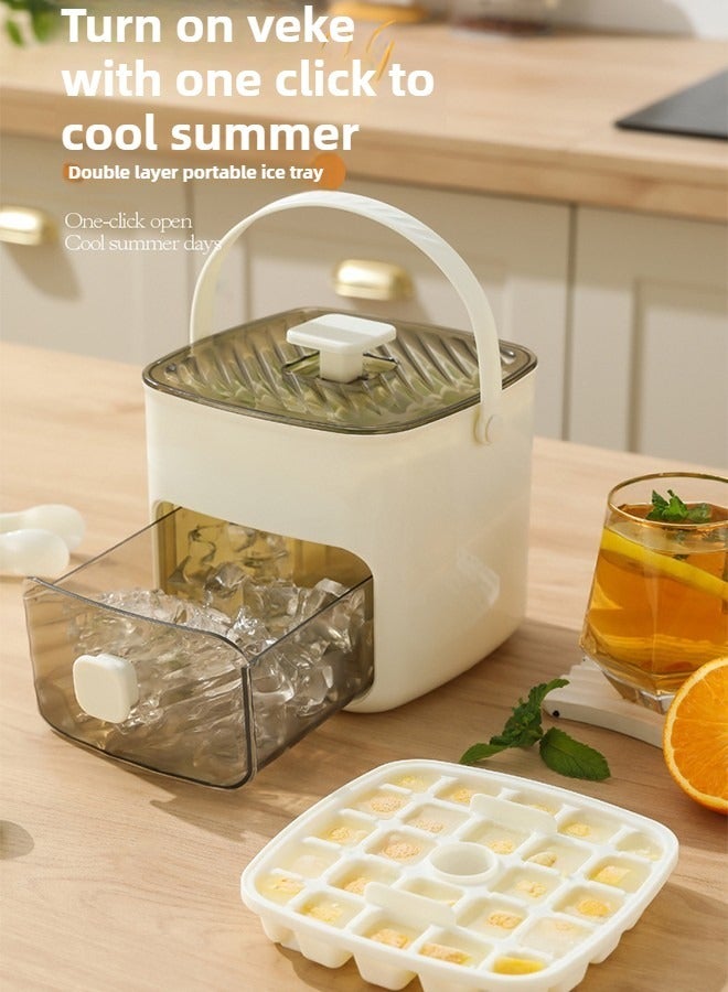 48-Ice Cube Maker with Easy-Press Lid - Large Capacity, Double Layer Design